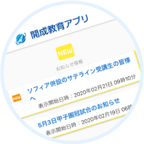 教室で配布する通知文や模試日程、イベント情報・休講情報などをお知らせ。開成教育グループからのお知らせ内容の確認漏れを防ぎます。