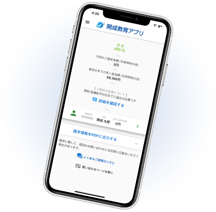 学習状況だけでなく、毎月の「請求情報」もひと目で確認。変更内容や過去の履歴も確認できます。