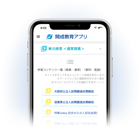 開成教育セミナーが誇る600単元以上の授業を映像化。欠席のフォローやテスト前の復習に最適。また、フリーステップの『LAP TEST』の解説動画も視聴できます。イベント機能と合わせて家庭学習を徹底サポートします。